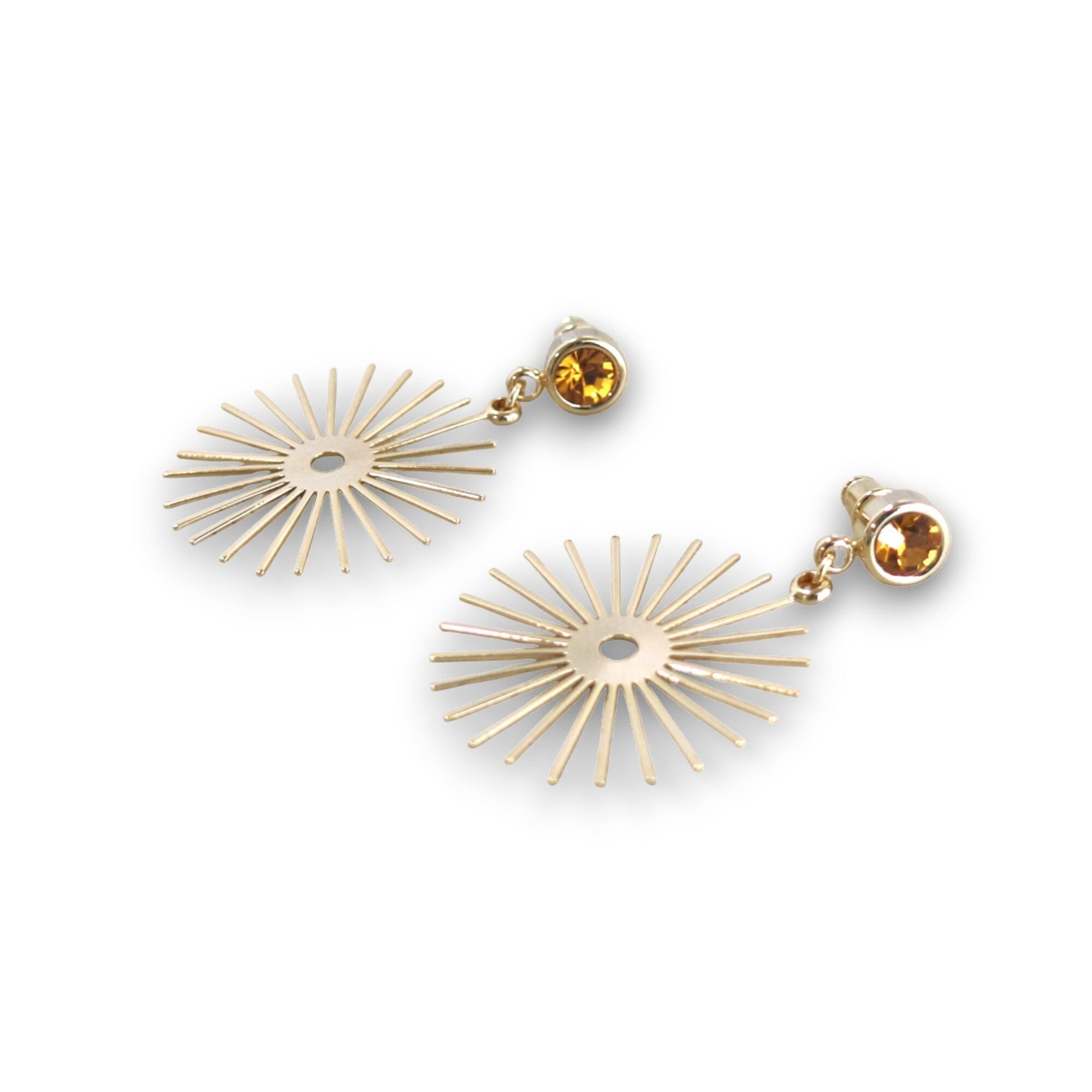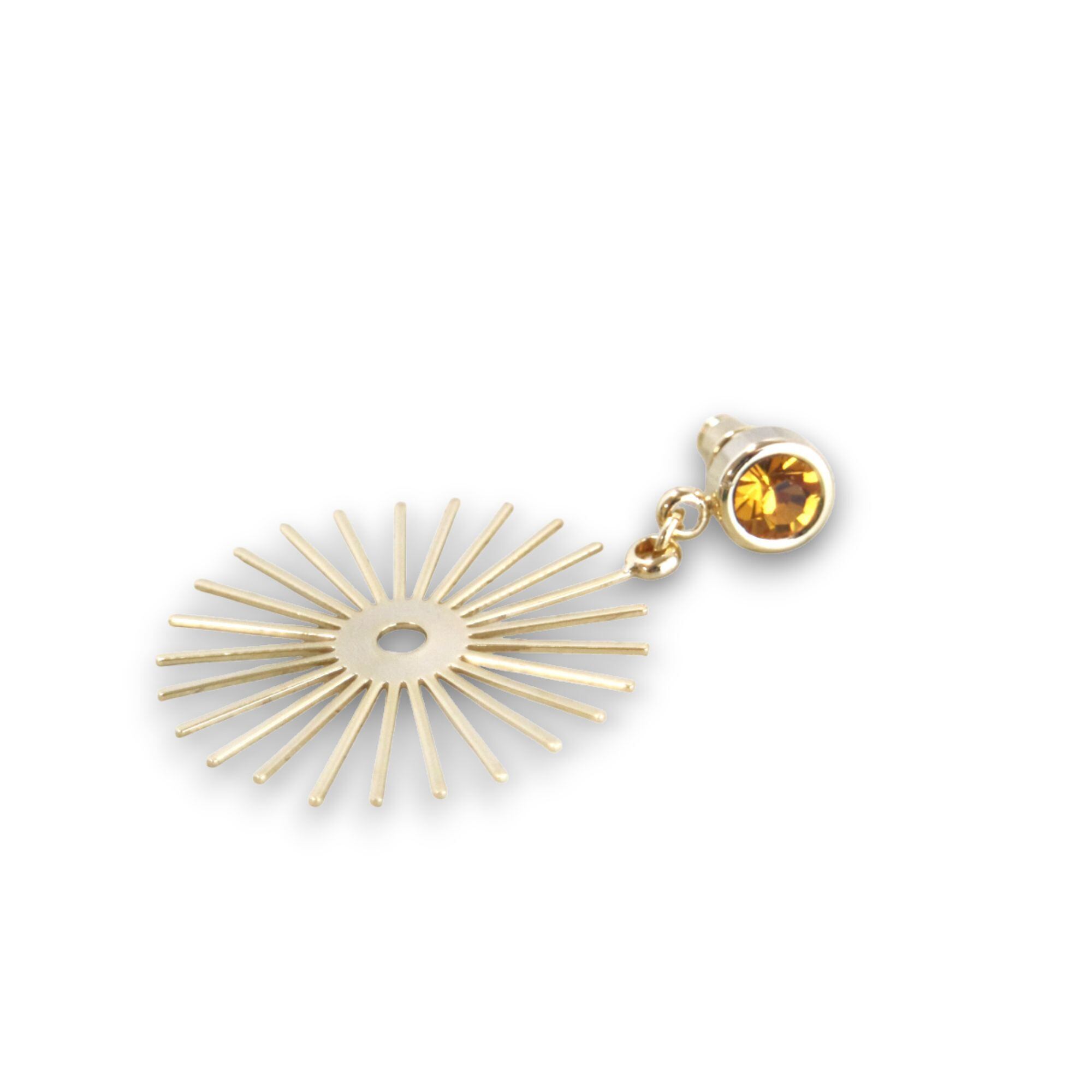 ミッドセンチュリースタイルのモビールの様にサンバーストモチーフが耳元で揺れるクールな大人のスイングピアスです。
