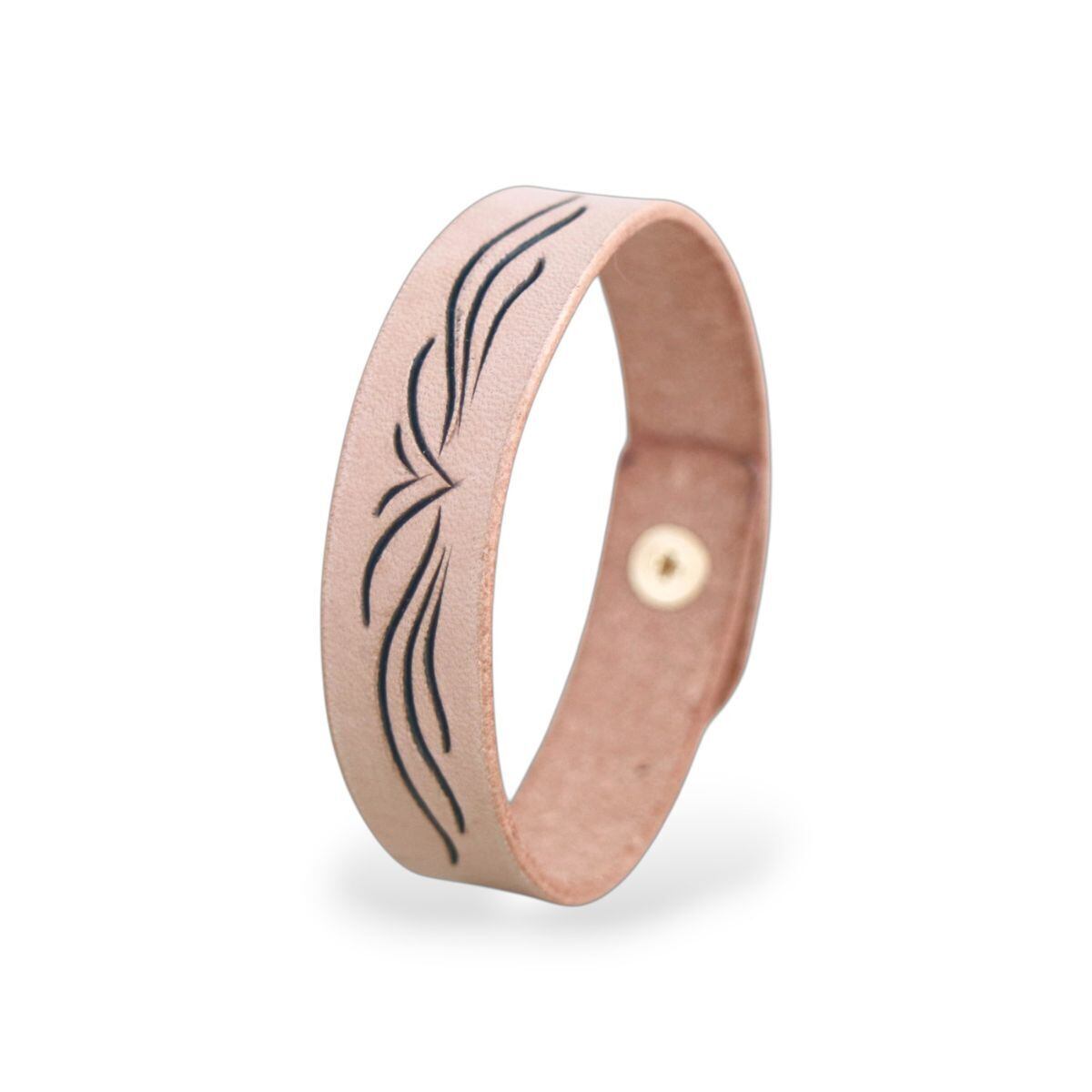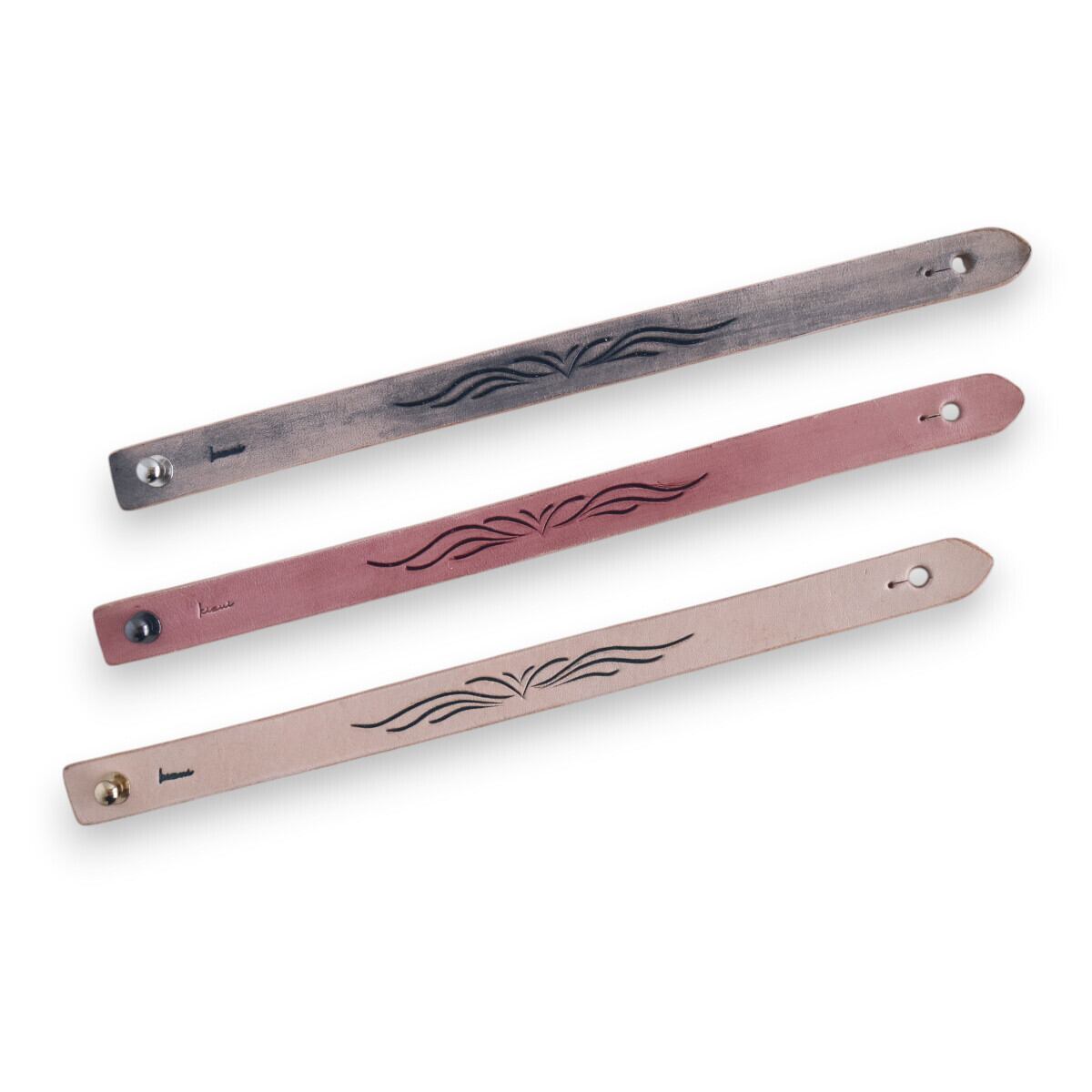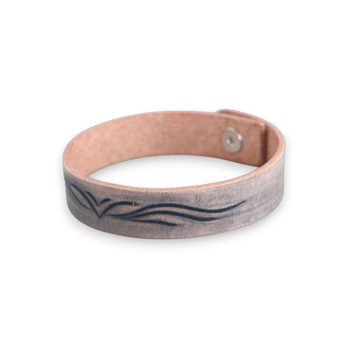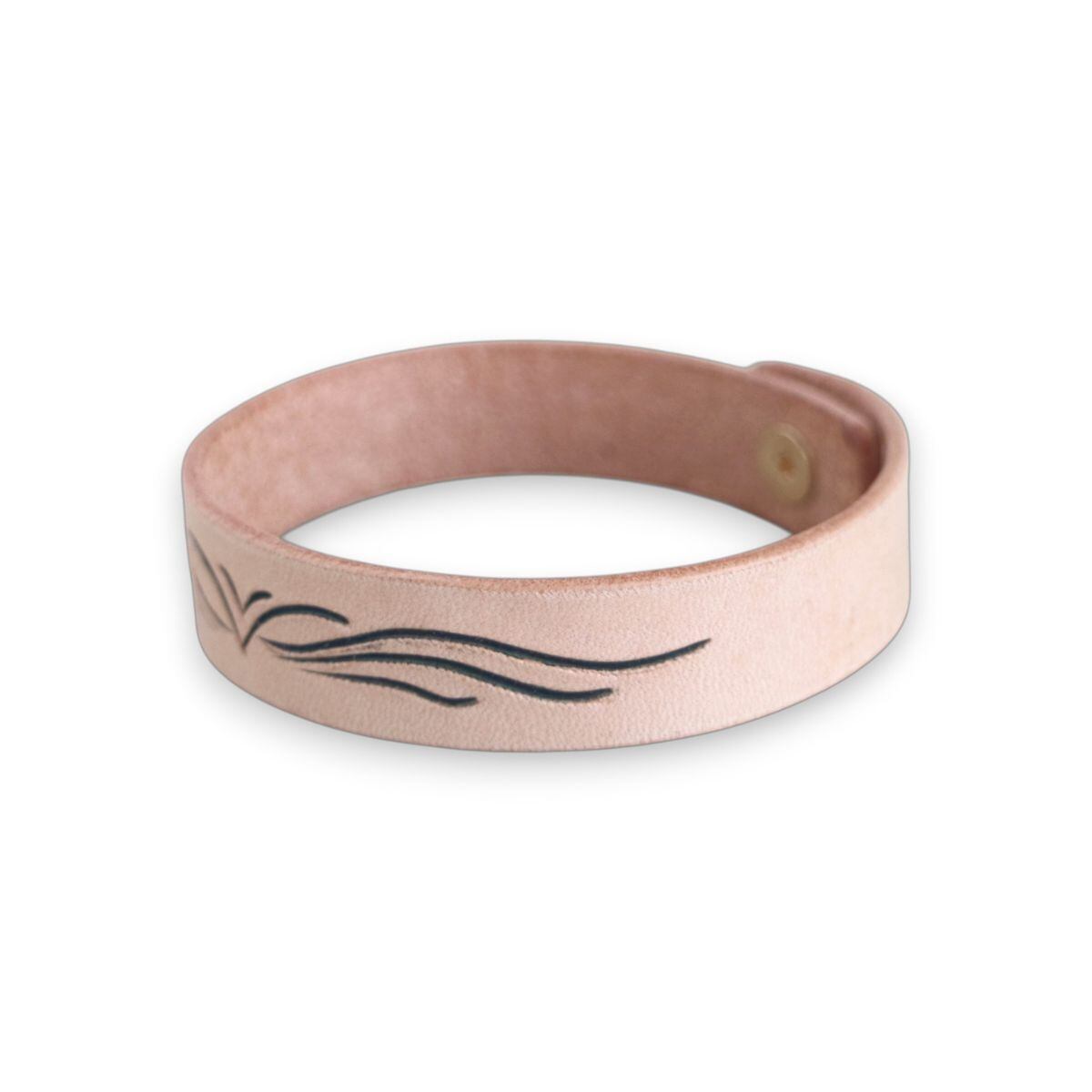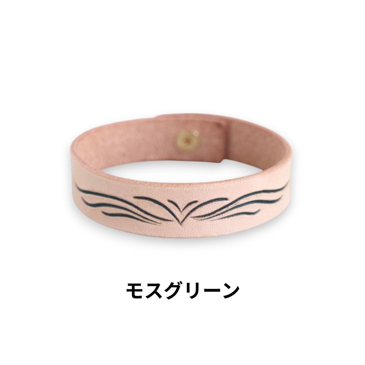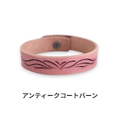 クラシカルなピンストライプ柄を丁寧に彫ったレザーブレスレットです。