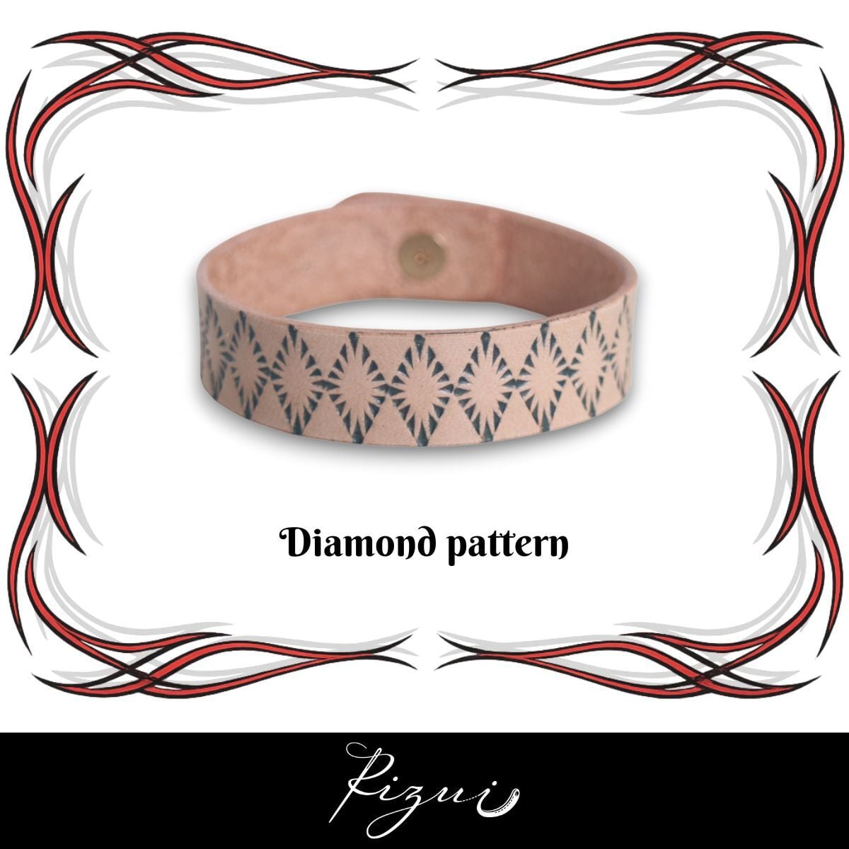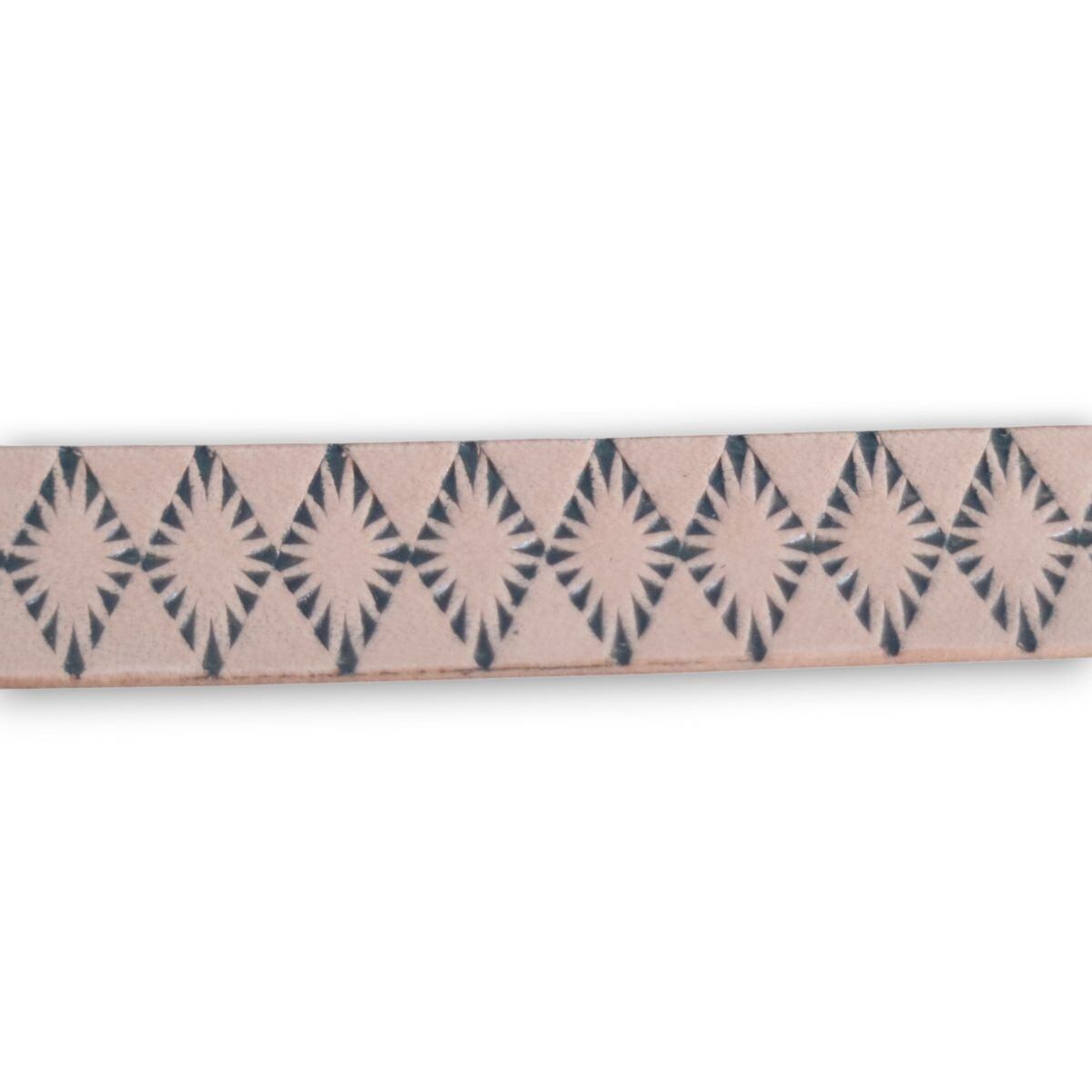 50’sカルチャーを感じさせる、ダイヤ柄の刻印をあしらったレザーブレスレット。