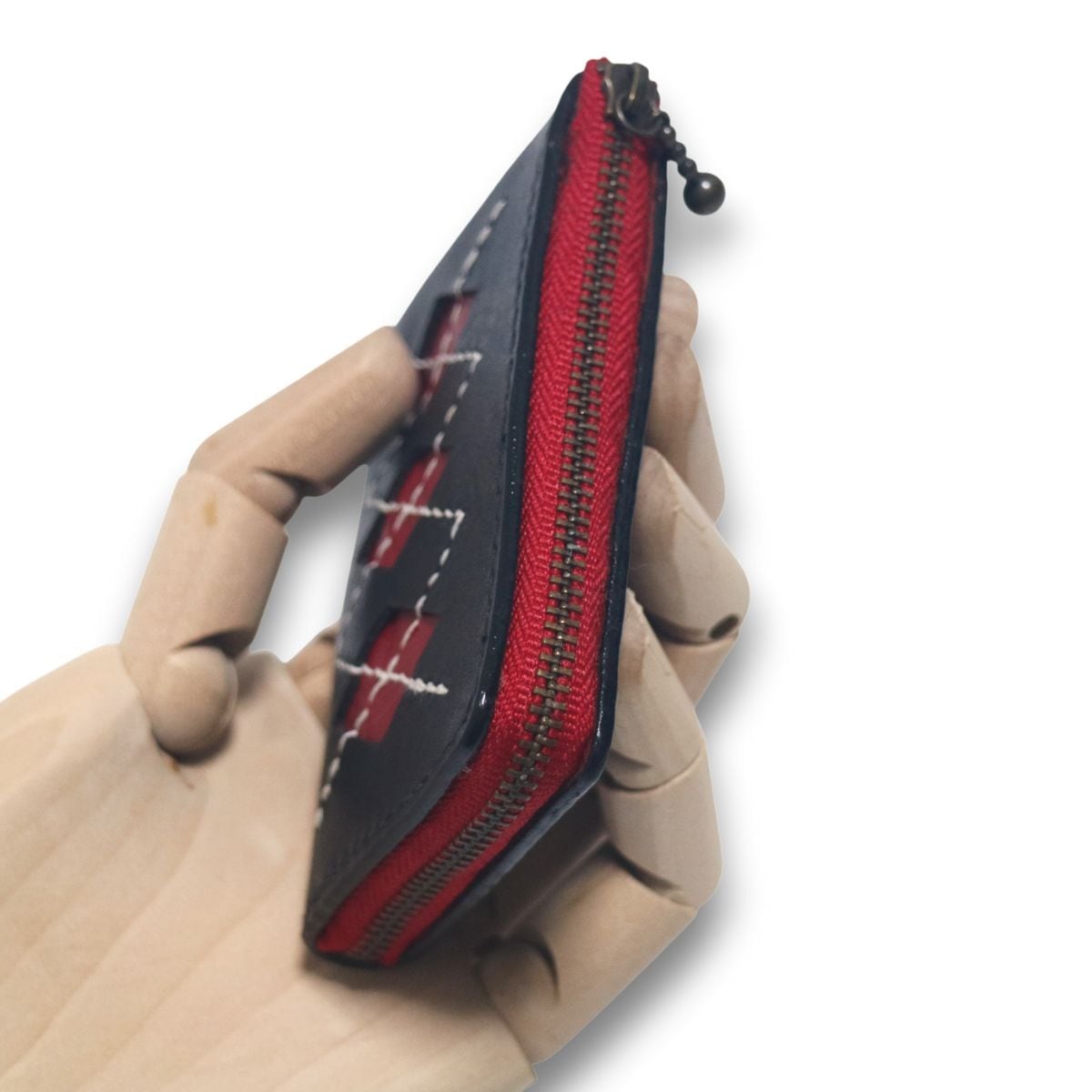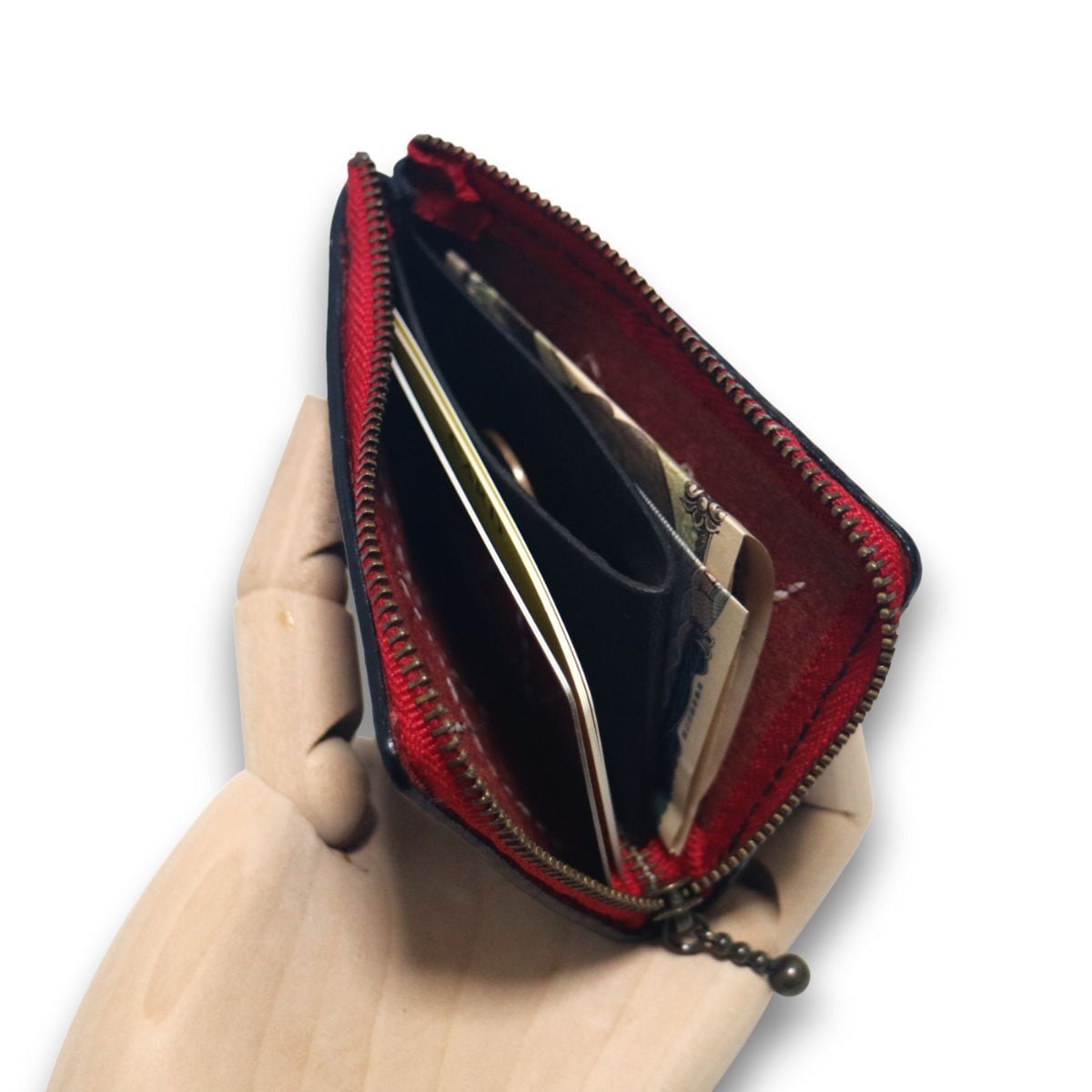 ミニ財布 / 本革財布 / コンパクトウォレット / L字ファスナー財布 / 手縫い財布 / レディース / メンズ / 牛革 / ブラックレザー / 小さい財布 / ミニマリスト / ギフト / プレゼント