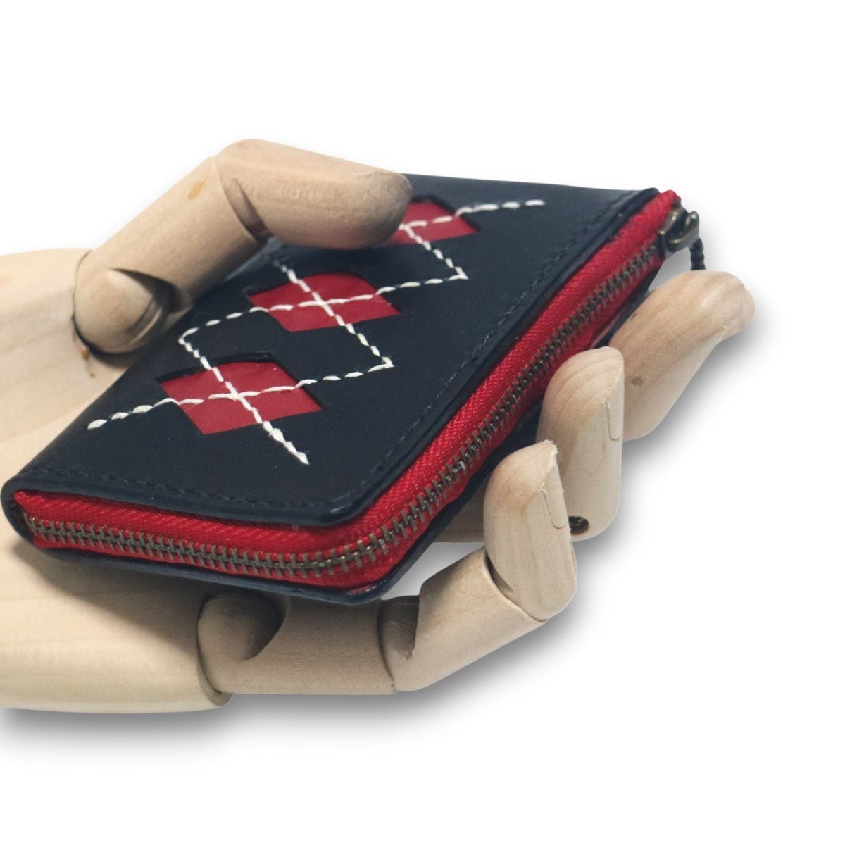 L字ファスナーウオレット ミニ ダイヤ柄パターン レッド BEAT SWING