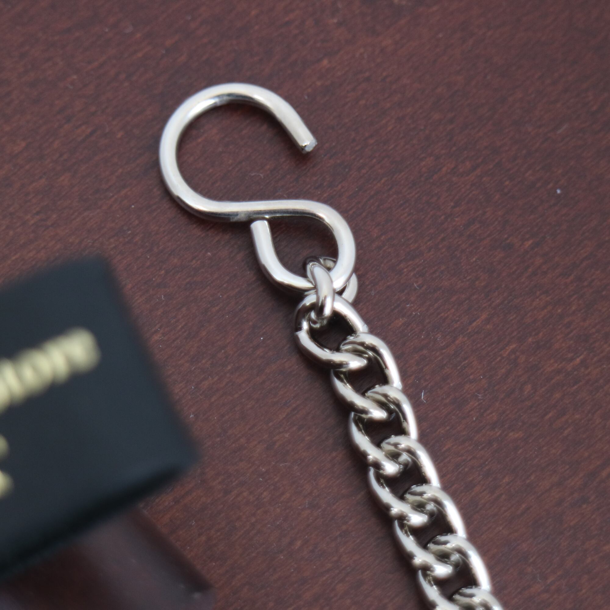 サイズ;チェーンの長さは30cm、本体革部分は折畳んだ状態で9cm幅2cm