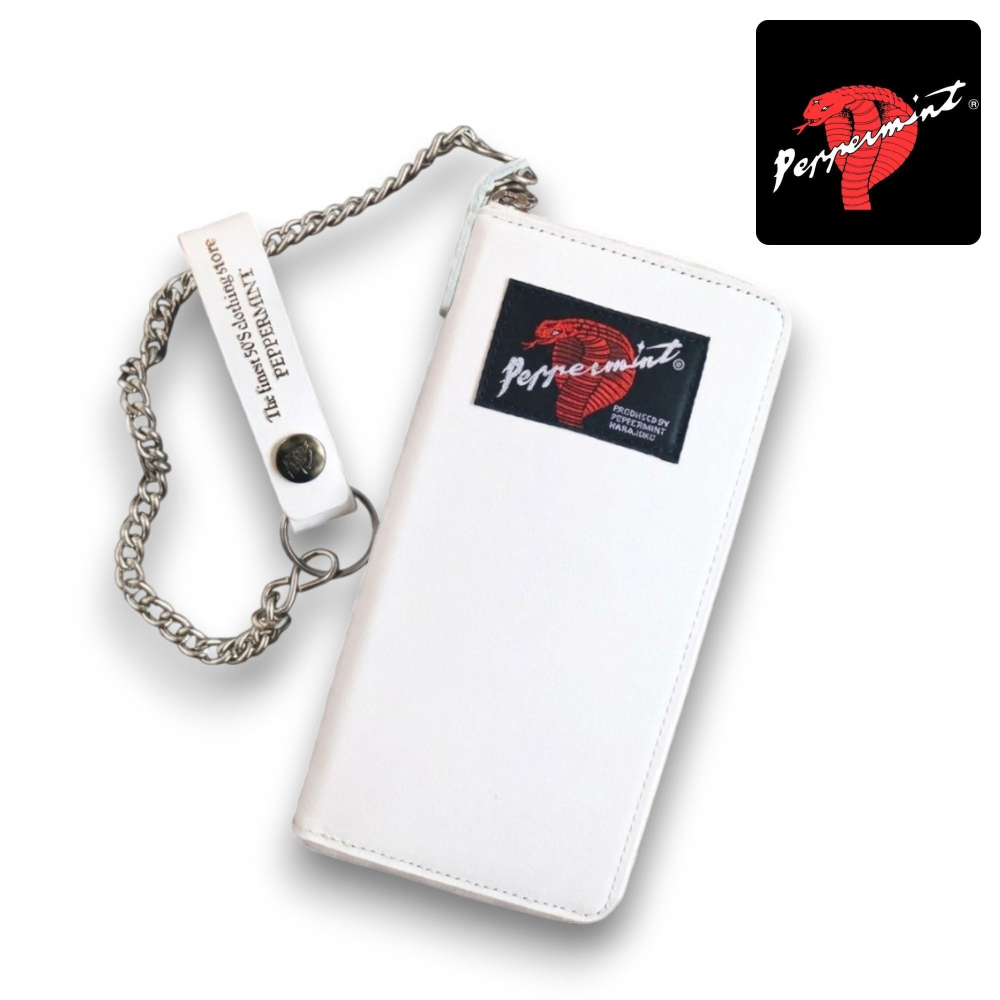総革コブラタグ ラウンドファスナー ウォレットチェーン付き 白 RSW-3361 TOKYO PEPPERMINT 長財布 本革 メンズ レディース ロカビリーファッション