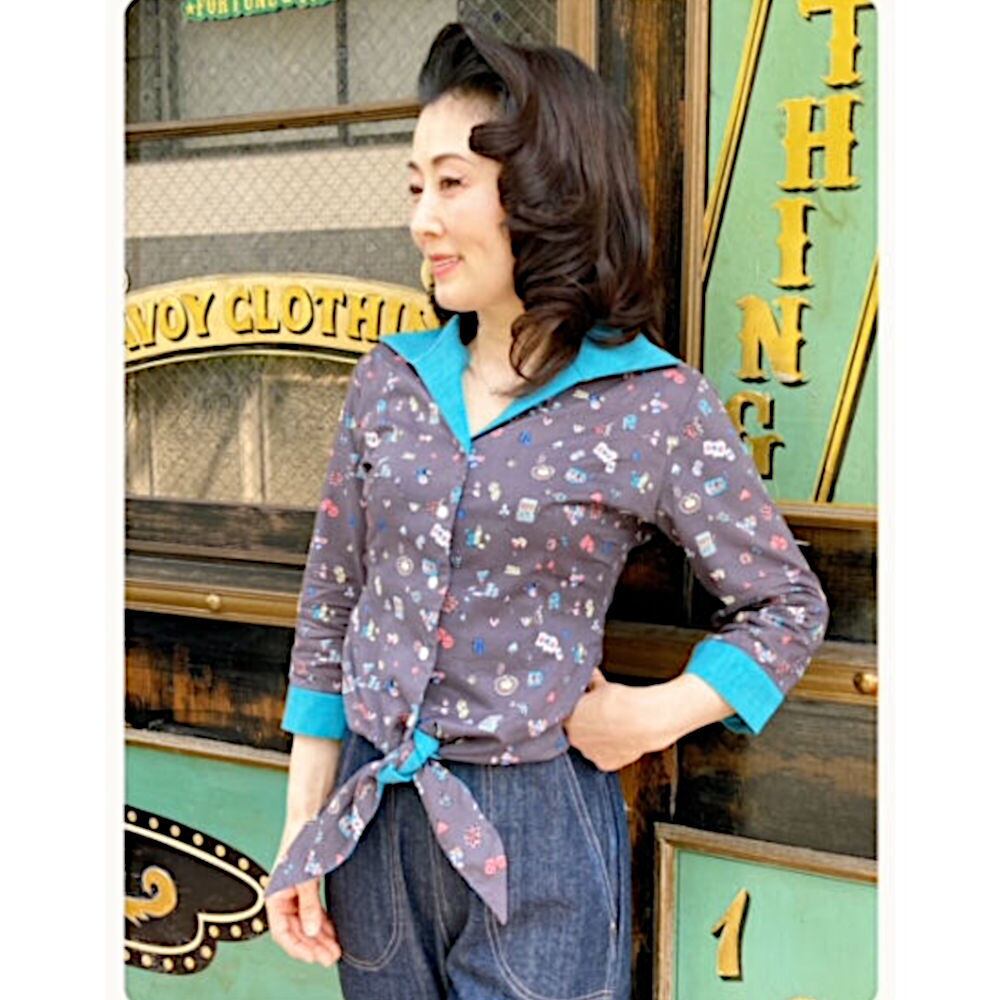 Casino Pattern Hemknot Blouse【SVY-LSH114】 SAVOY CLOTHING
