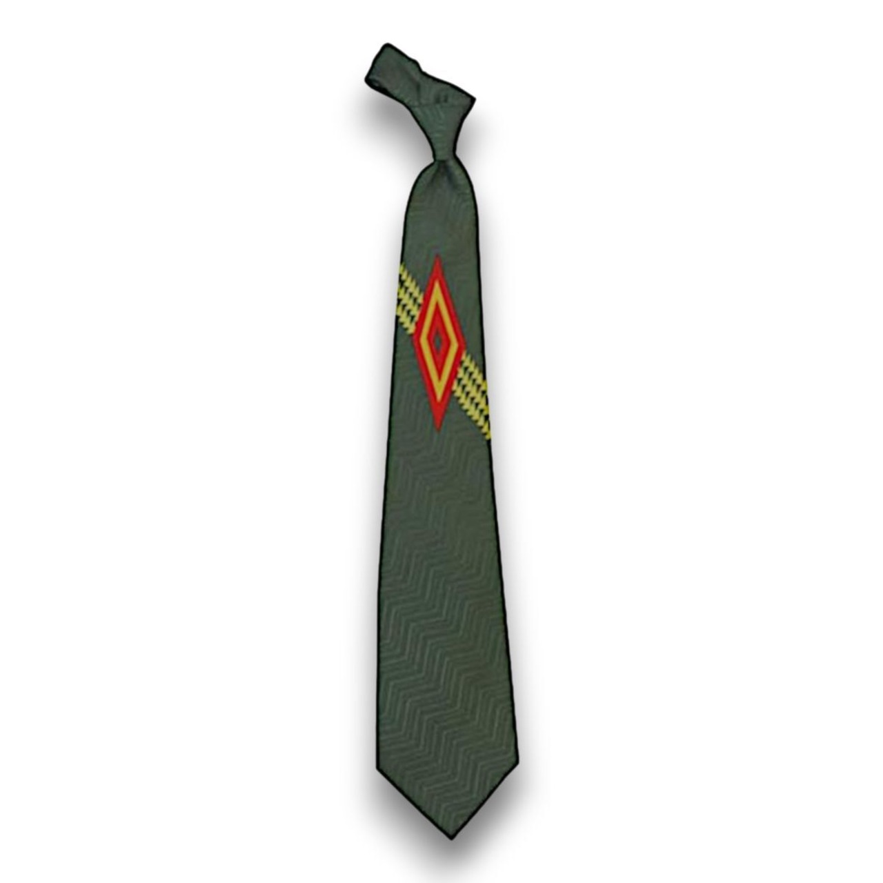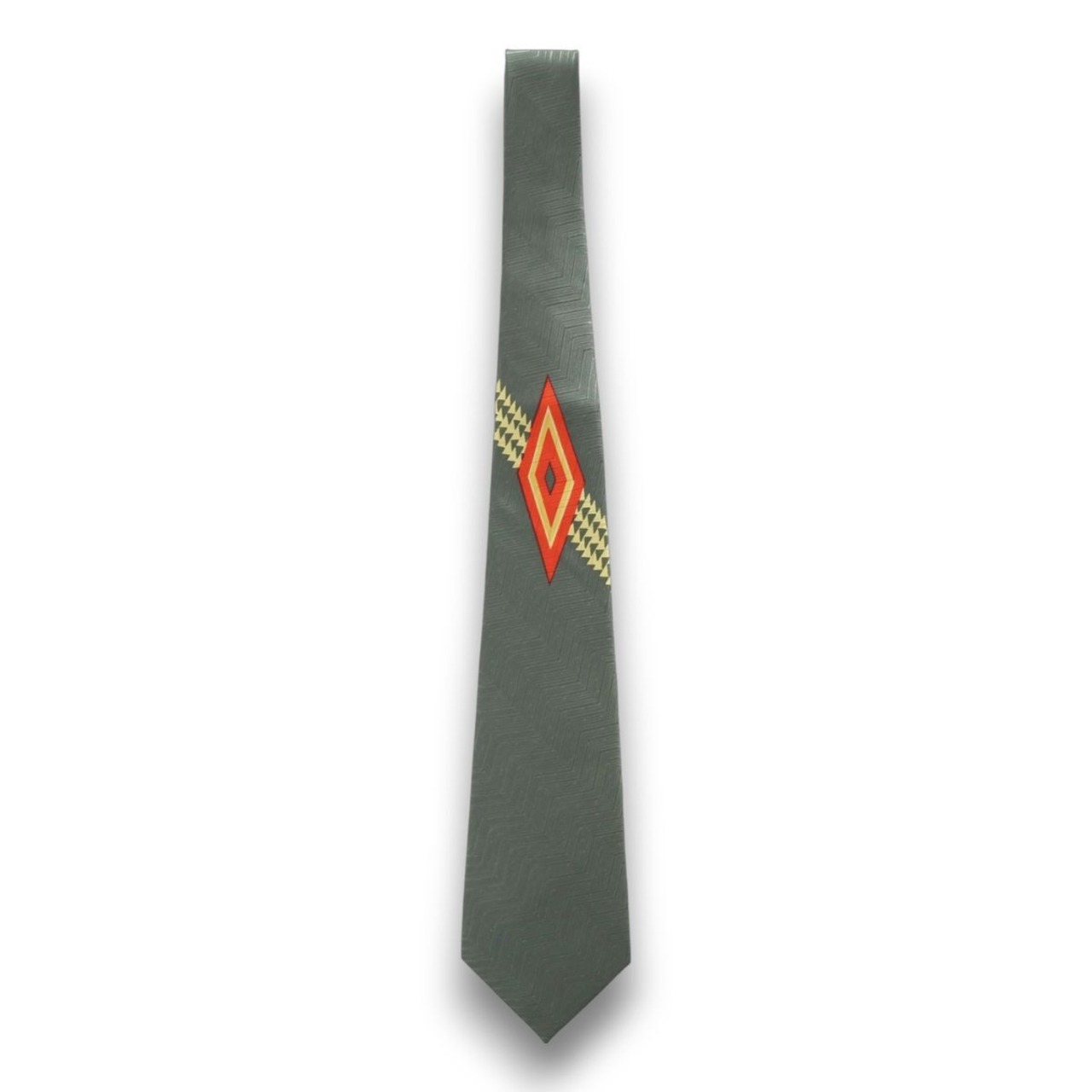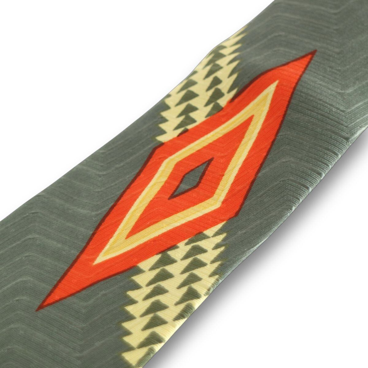オリーブの斜め山型ドビー織り地に黄色斜め三角ストライプオレンジと黄色ダイヤ